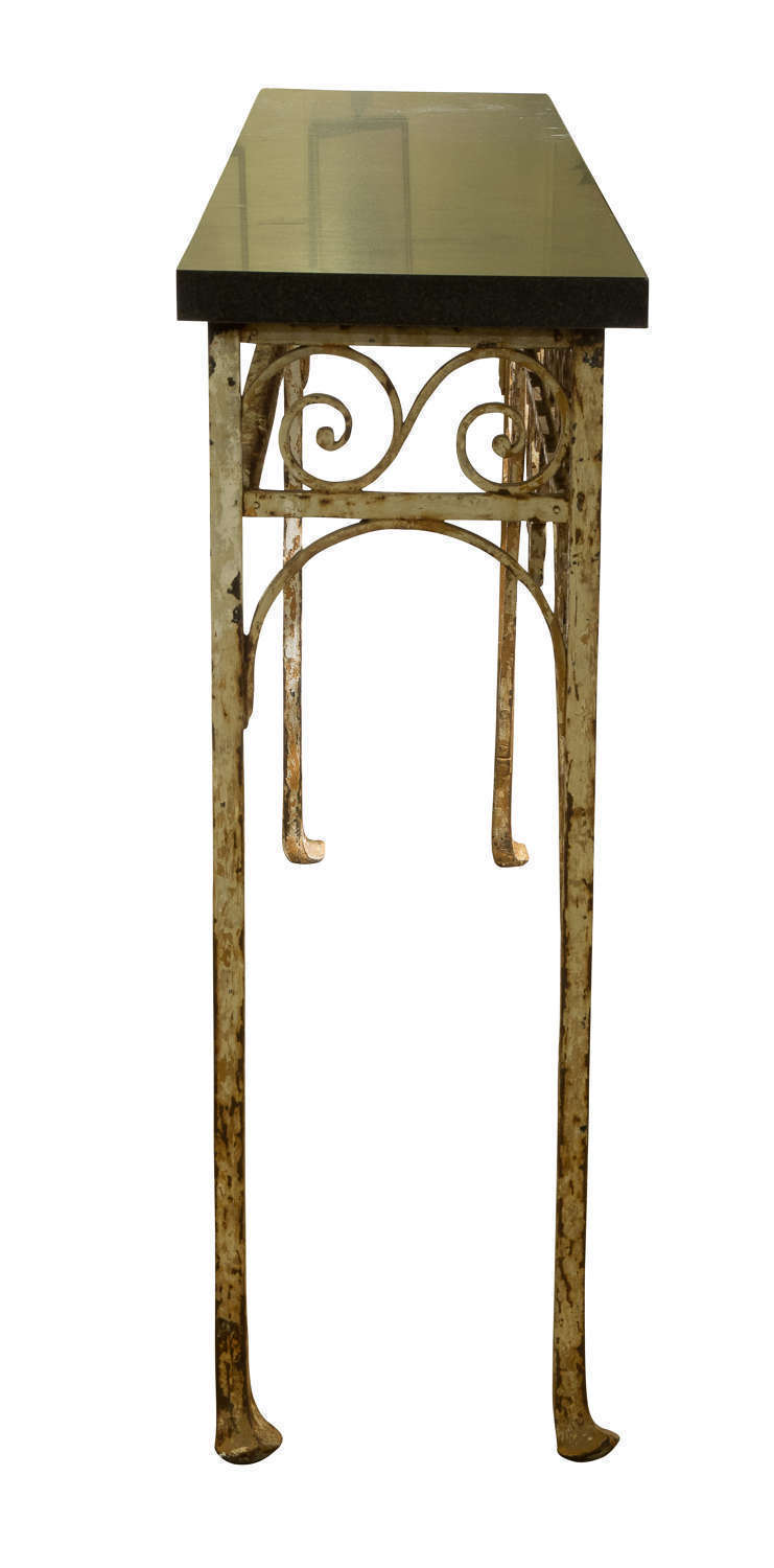 1930 S Wrought Iron Console Table With Later Slate Top In