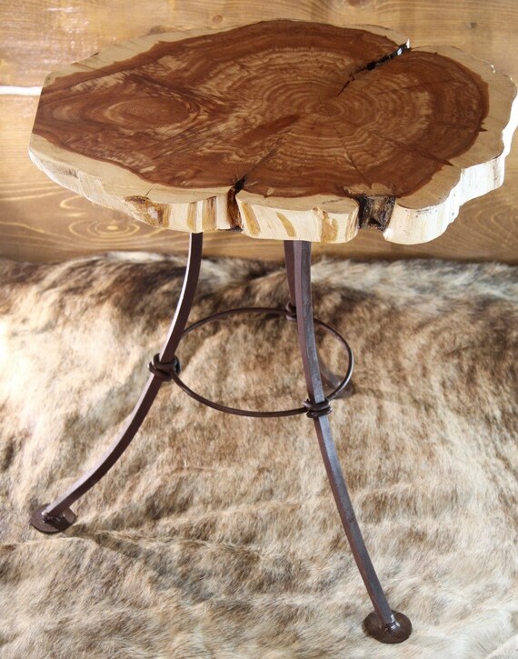 Live Edge End Table Cedar End Table Wrought Iron Table Etsy