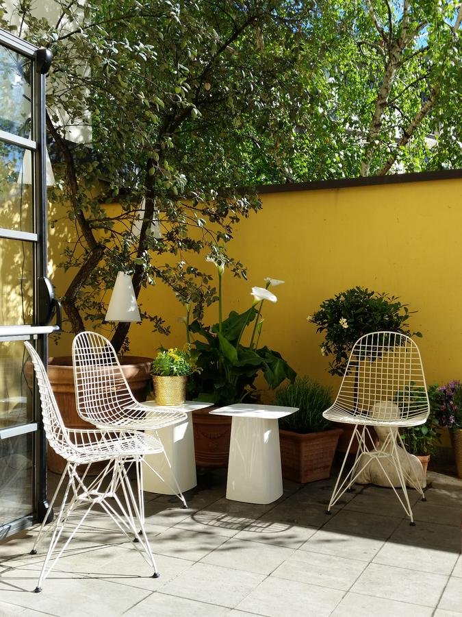 Yellow Iron Outdoor Side Tables Patio Tables The Home Depot