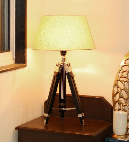 Buy Yellow Fabric Shade Tripod Table Lamp With Black Base By